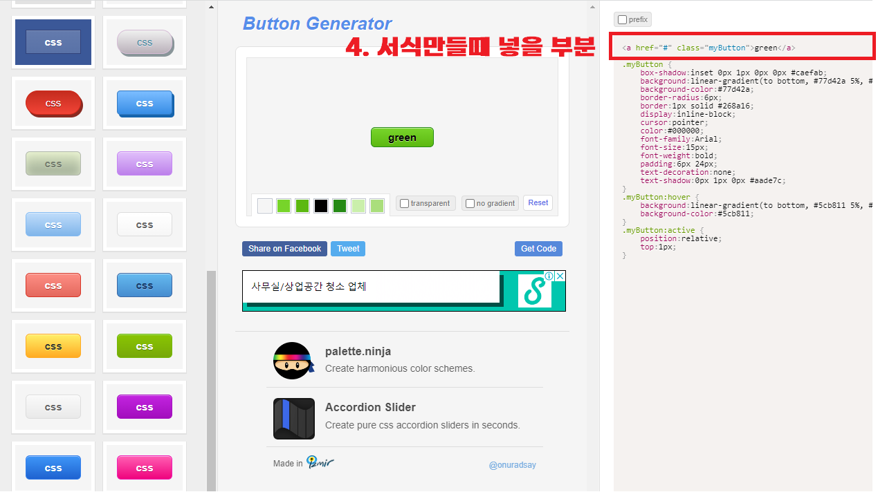다시 버튼 사이트로 돌아와서 서식을 만들기 위한 코드를 복사합니다.